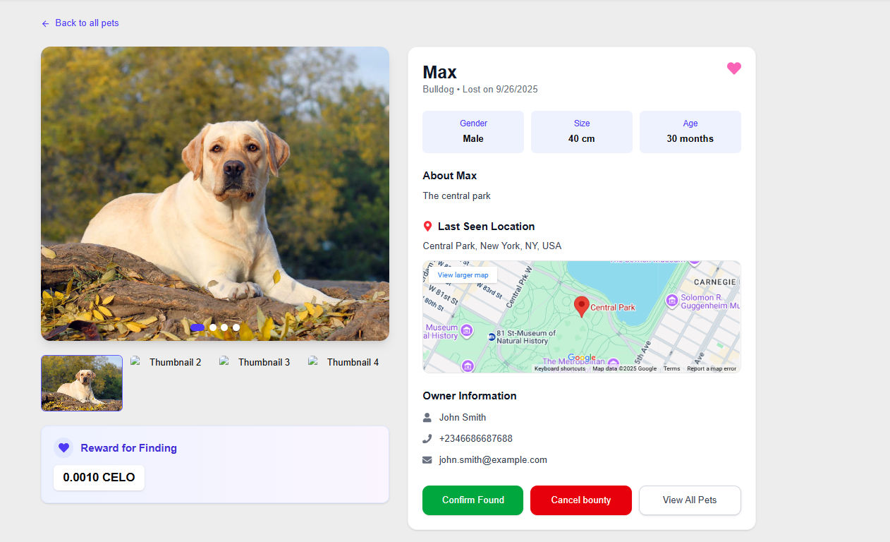 Allows pet owners to cancel a lost pet report if needed.